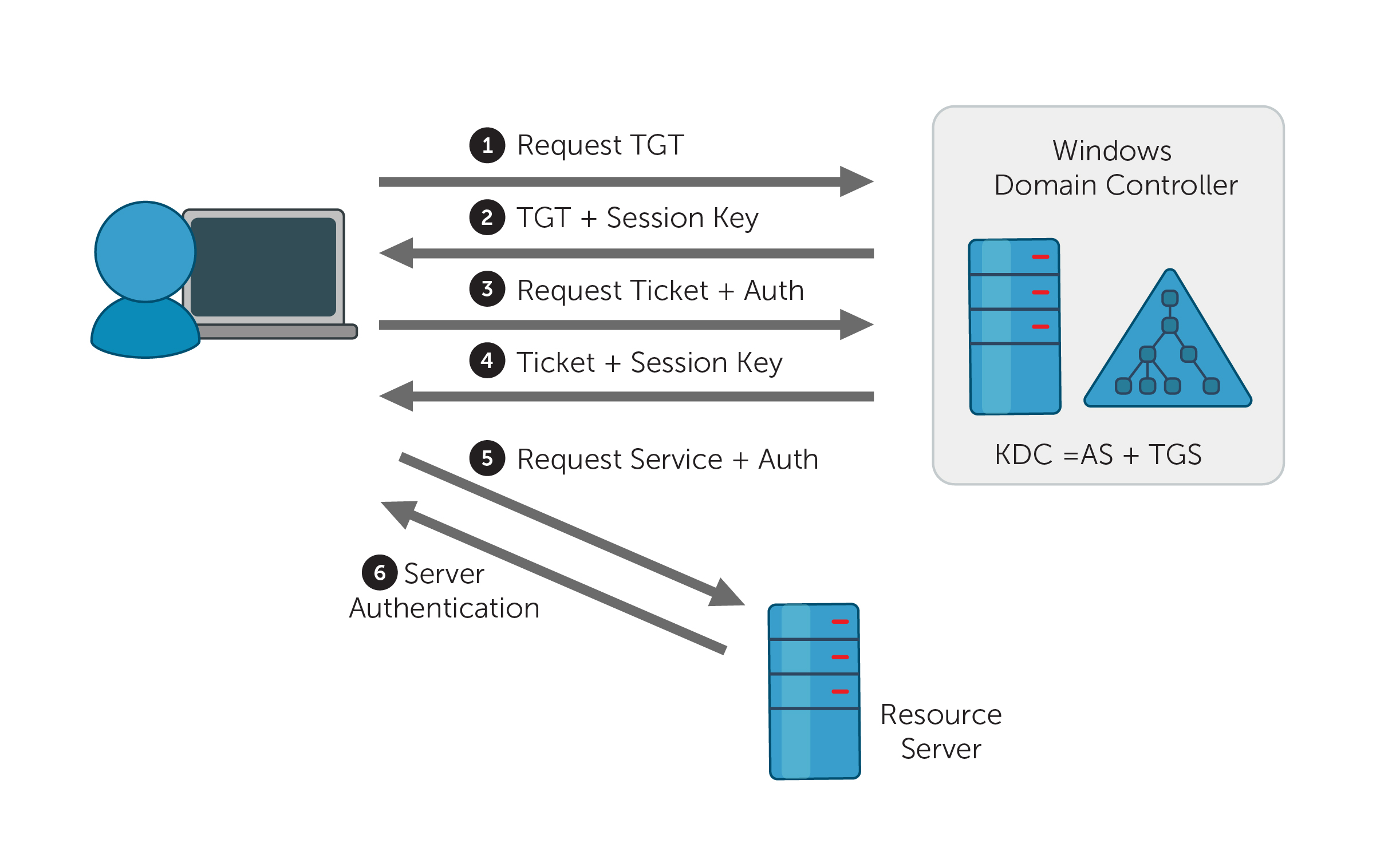 * El servidor de recursos descifra el ticket de servicio, verifica la autenticidad de la autenticación del cliente y, si todo es correcto, permite el acceso.