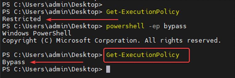 A continuación, se visualizarán diferentes técnicas para eludir la política de ejecución de PowerShell sin tener derechos de administrador local en el sistema: