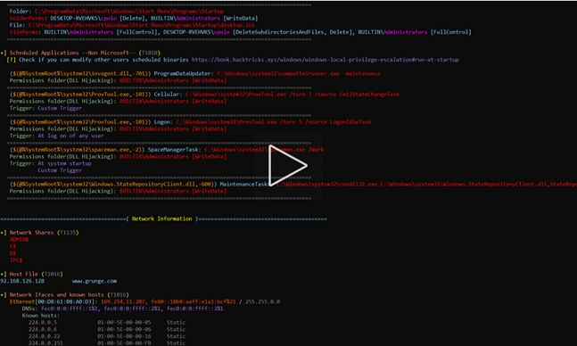 Información del Sistema y Configuración: WinPEAS recopila información general sobre el sistema operativo, versiones, configuraciones de red, y servicios en ejecución.