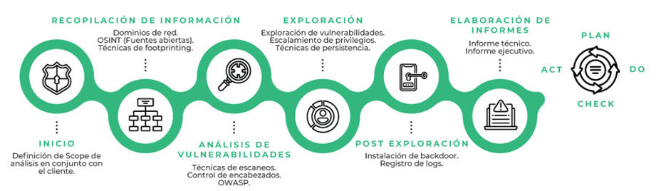Los servicios de pentesting se basan, también, en la realización de ataques. Pero estos suelen tener mayores restricciones. Tanto de tiempo como de alcance, limitándose a acciones concretas. Su objetivo no consiste tanto en mejorar el nivel de resiliencia de una organización. Sino en identificar vulnerabilidades para facilitar su corrección.